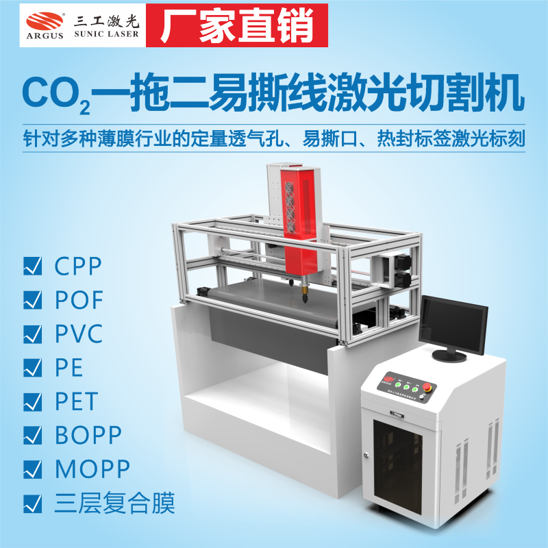 易撕線(xiàn)激光技術(shù)在軟包裝袋上根據(jù)需求進(jìn)行切割虛線(xiàn),其加工方法是利用激光器產(chǎn)生的光束,通過(guò)聚焦在設(shè)計(jì)好的易撕線(xiàn)處均勻的切割出一條深僅若干微米的細(xì)線(xiàn),該線(xiàn)破壞了復(fù)合膜的外層包裝,保留內(nèi)層包裝,既不破壞包裝功能,又使撕裂時(shí)可以規(guī)則地沿易撕線(xiàn)撕開(kāi)包裝袋口,而且設(shè)備具有自動(dòng)定位功能!能夠應(yīng)用在各類(lèi)OPP、塑料、鋁箔 、防靜電/屏蔽袋、抽真空袋、鋁箔面膜、寵物雜糧袋、25KG塑料粒紙鋁塑復(fù)合袋、微孔紋真空袋、建材包裝袋、防潮袋、封口膜等領(lǐng)域中。