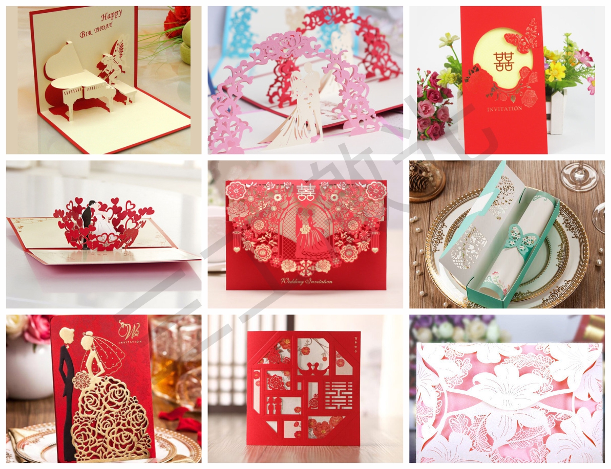 生活中,常常能見到如上圖特別精美的紙質(zhì)工藝品,多數(shù)指賀卡、喜帖等,我們用來送人表心意或是祝福留念。而我們也發(fā)現(xiàn),紙品的制作越來越特別精致,令人嘆為觀止。而成就這些美麗紙品的,正是紙張激光鏤空機(jī),紙張雕刻、切割之科技美。
