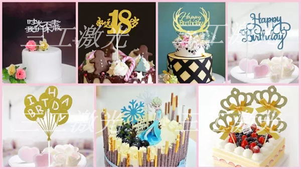 創(chuàng)意在這個時代永不過時,對于蛋糕裝飾行業(yè)亦是如此。除了蛋糕甜品本身的口感,精美的蛋糕插牌或者蛋糕圍邊也是吸引消費者購買的一大因素。采用激光模切機來加工蛋糕裝飾品,給了蛋糕插牌無限的可能,激光模切雕刻技術,打破技術局限,無需制板,可雕刻鏤空任意形狀的蛋糕插牌,并且激光鏤空的花紋精美細膩,具有很好的立體感,下面上幾張樣圖欣賞一下。