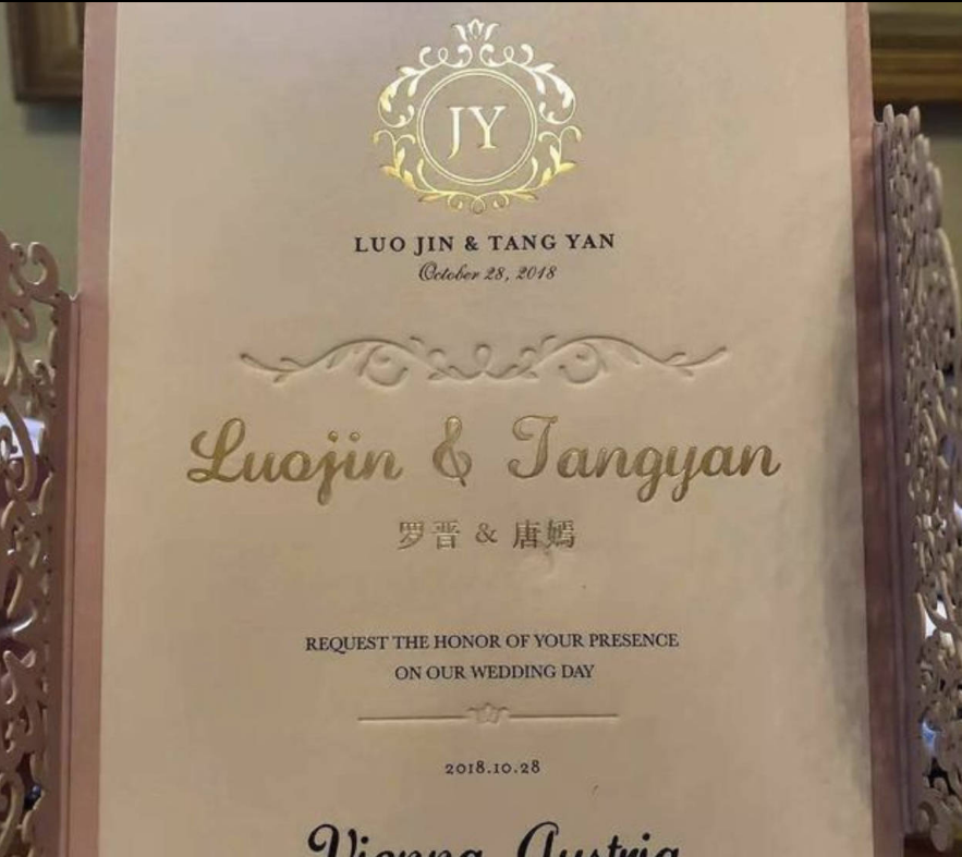 激光打標(biāo)機(jī)雕刻鏤空結(jié)婚請柬 與嘉賓一起見證唐嫣羅晉婚幸福愛情