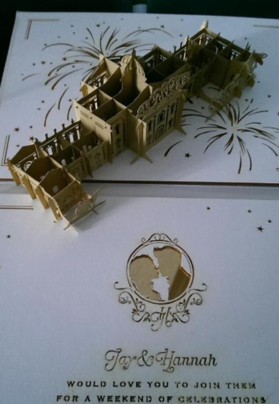周董周杰倫的請柬就更加有特色了,中間竟然有一個立體的城堡作為裝飾,婚禮請?zhí)捎蒙僖姷?D模式,利用紙品激光鏤空機(jī)制作出來的3D立體請柬,關(guān)上跟普通的請柬沒差別,打開瞬間撲面而來的高級感,封面還有兩人頭像的剪影,真的是給了昆凌小公主童話般的婚禮,真真應(yīng)了那句話,愛她就把她寵成童話里的公主。