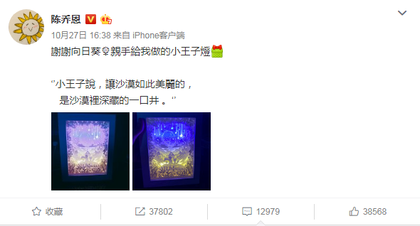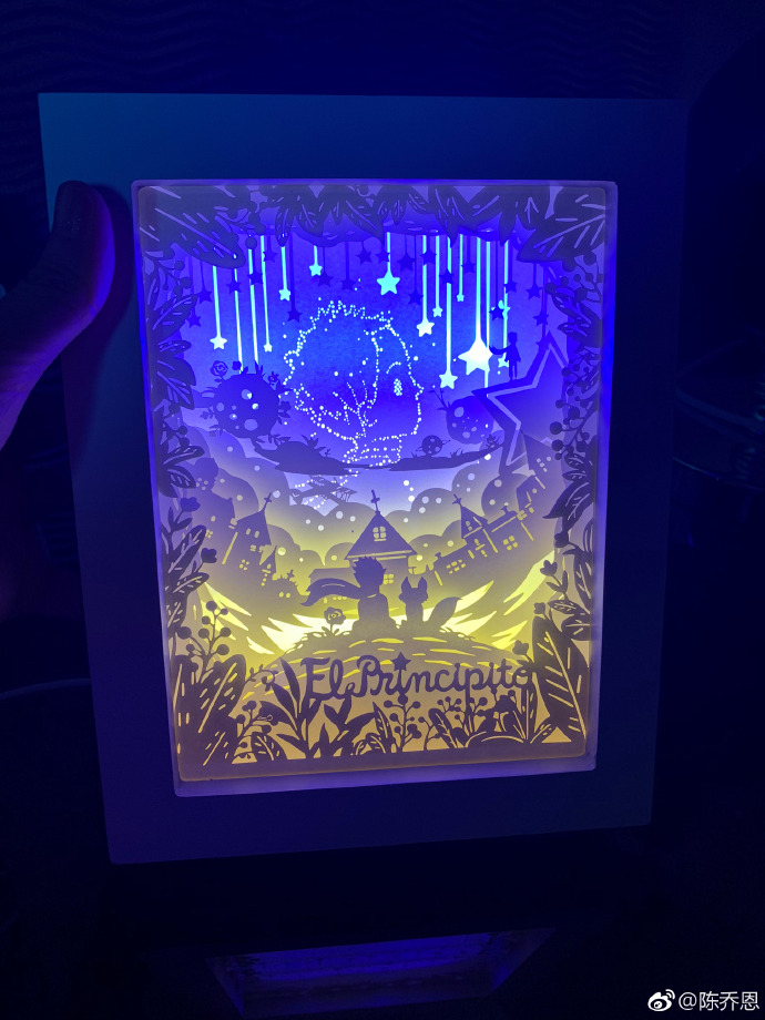3D立體光影紙雕燈陳喬恩也在自己的微博上推薦過,她在微博上表示非常喜歡小王子燈,配文“小王子說,讓沙漠如此美麗的,是沙漠里深藏的一口井”并上傳了兩張小王子紙雕燈的圖,冷黃色的燈光透過一層層剪影,呈現(xiàn)出童話里的畫面,匠心獨運的設(shè)計,精心打磨的細節(jié),做成后燈光清冷,宛如沙漠清幽。幽靜的燈光適合放在床頭,這種激光打標(biāo)機雕刻鏤空的紙雕燈配上電源可以當(dāng)小夜燈使用,美麗創(chuàng)意且實用。
