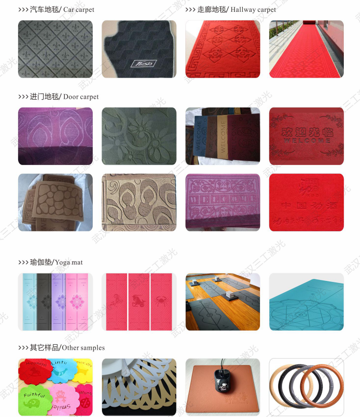 瑜伽墊一般分為T(mén)PE、PVC、EVA、NBR、乳膠墊等材質(zhì)。而瑜伽墊激光雕刻工藝原理就是利用高能量激光束在這些材料上雕刻花紋,并最終應(yīng)用到瑜伽墊上面。利用激光雕刻工藝定制化程度高、雕刻速度快、靈活性強(qiáng)等特點(diǎn),可以在瑜伽墊上隨意刻畫(huà)花紋和LOGO,讓產(chǎn)品更具美感。也可以雕刻專業(yè)瑜伽體位線,讓您練起瑜伽更加得心應(yīng)手!瑜伽墊專用高速激光雕花機(jī),敞開(kāi)式設(shè)計(jì),加工幅面達(dá)800mm X 無(wú)限長(zhǎng),進(jìn)口激光器,加工速度快、精度高!可自動(dòng)收邊,尤其適合大幅面連續(xù)線條圖文雕花,履帶試工作臺(tái),可配合送料裝置(選配)瑜伽墊加工速度更快!