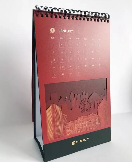 封面鏤空,即通對(duì)封面某個(gè)特定位置鏤空,露出第二張的內(nèi)容,通常鏤空外形是企業(yè)的LOG或有意義的圖形,用以展示美觀或表達(dá)特殊意思。此工藝是目前幾年臺(tái)歷制作,比較流行,比較暢銷(xiāo)!