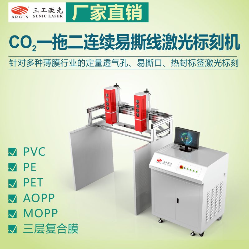 適用切割材料有OPP、BOPP、PE、PET(聚酯)、NY(尼龍)、鋁箔、紙、CPP、速凍袋、自立袋、拉鏈袋、咖啡袋等高檔包裝袋應用激光易撕線較為廣泛。