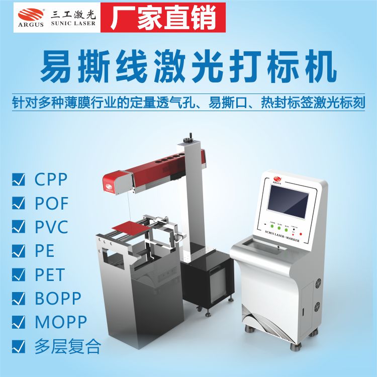 3、專為薄膜包裝行業(yè)設(shè)計的易撕線、定量透氣孔激光標(biāo)刻機(jī),一套系統(tǒng)可配置多個激光頭,觸屏獨立操作。可根據(jù)客戶現(xiàn)有生產(chǎn)線定制安裝尺寸!