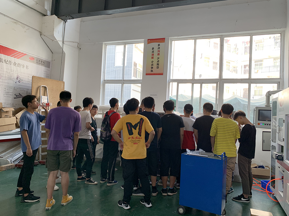 2019年8月27日,我公司迎來了一批新鮮血液——武漢工程大學的學生們。我司人員熱情地接待了學習的學生,并對學習參觀內容、觀摩路線進行了合理的安排。在當天聽完了各項理論培訓后,接下來分別到我司車間(雕刻切割事業(yè)部、激光公司、智能公司、精密公司,倉庫)進行參觀,在參觀學習期間,學生們積極提問,我司陪同人員熱心解答,場面熱情融洽。